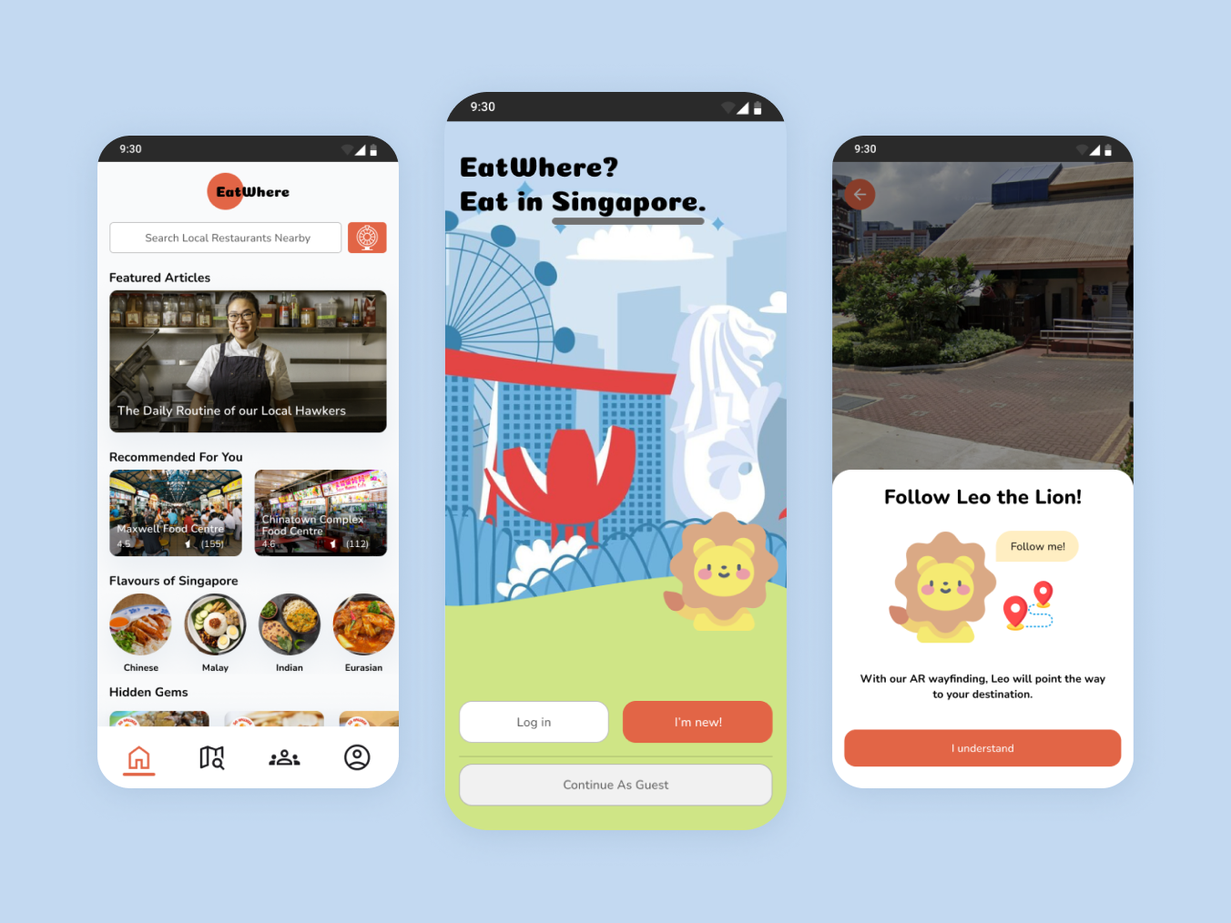 EatWhere is an fictitious app targeted to encourage locals to uncover the hidden gems of local food culture by exploring lesser-known hawker centres and food spots.