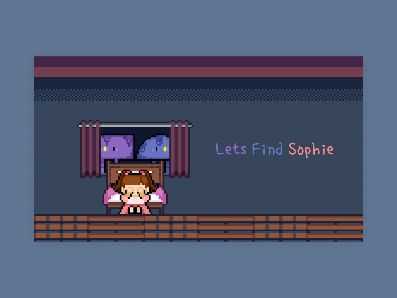 Let's Find Sophie is a 2D platformer game where you, your partner, and a little girl named Sophie decided to entertain yourselves by playing hide-and-seek in the house. As you two work together to seek Sophie out across different rooms throughout the house, you and your partner slowly realize that something is not right with the game.