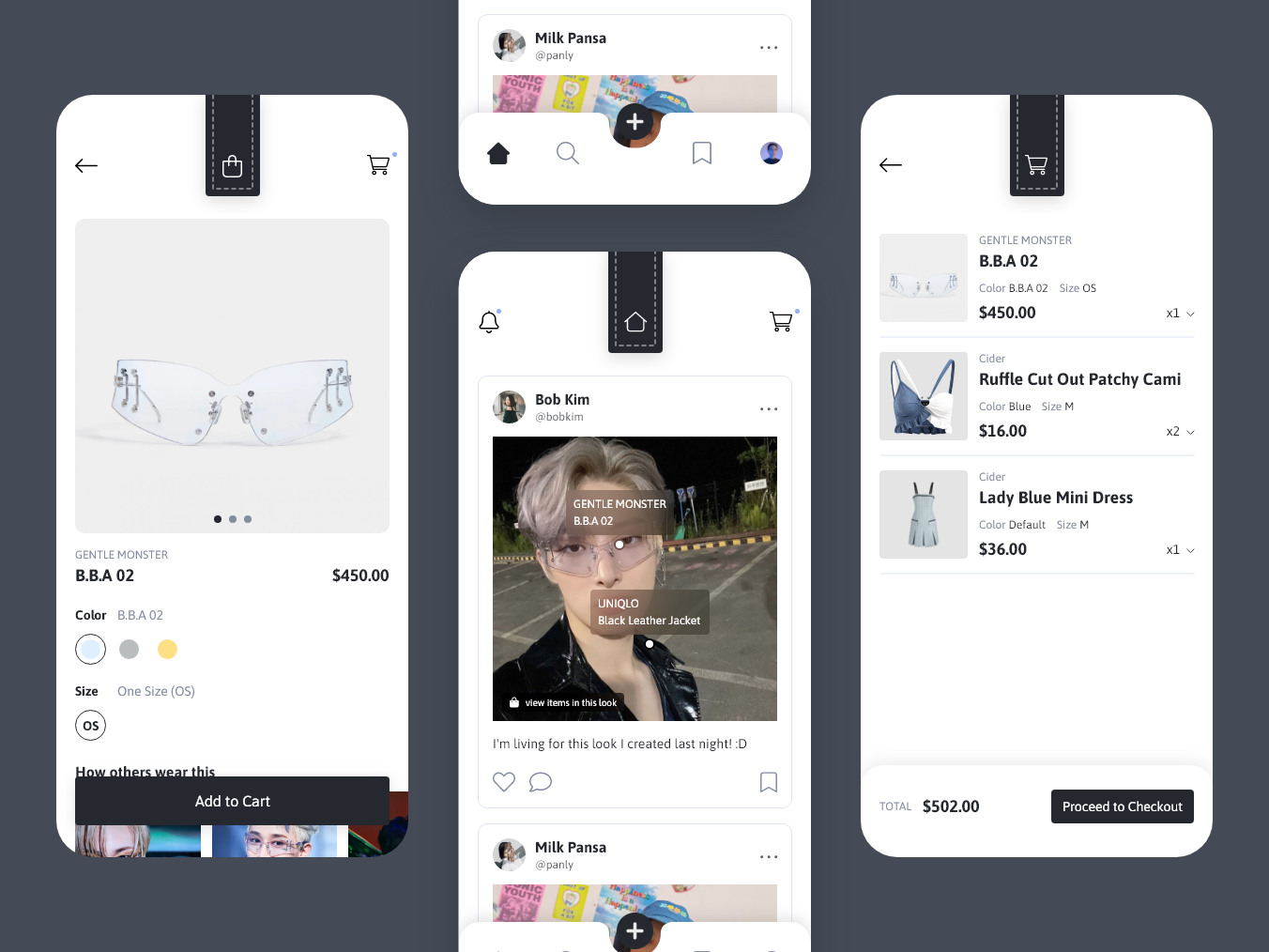 Poptrait is a fictional social media app that has a E-commerce site built into it to allow users of this app to browse and buy clothing they fancy online.