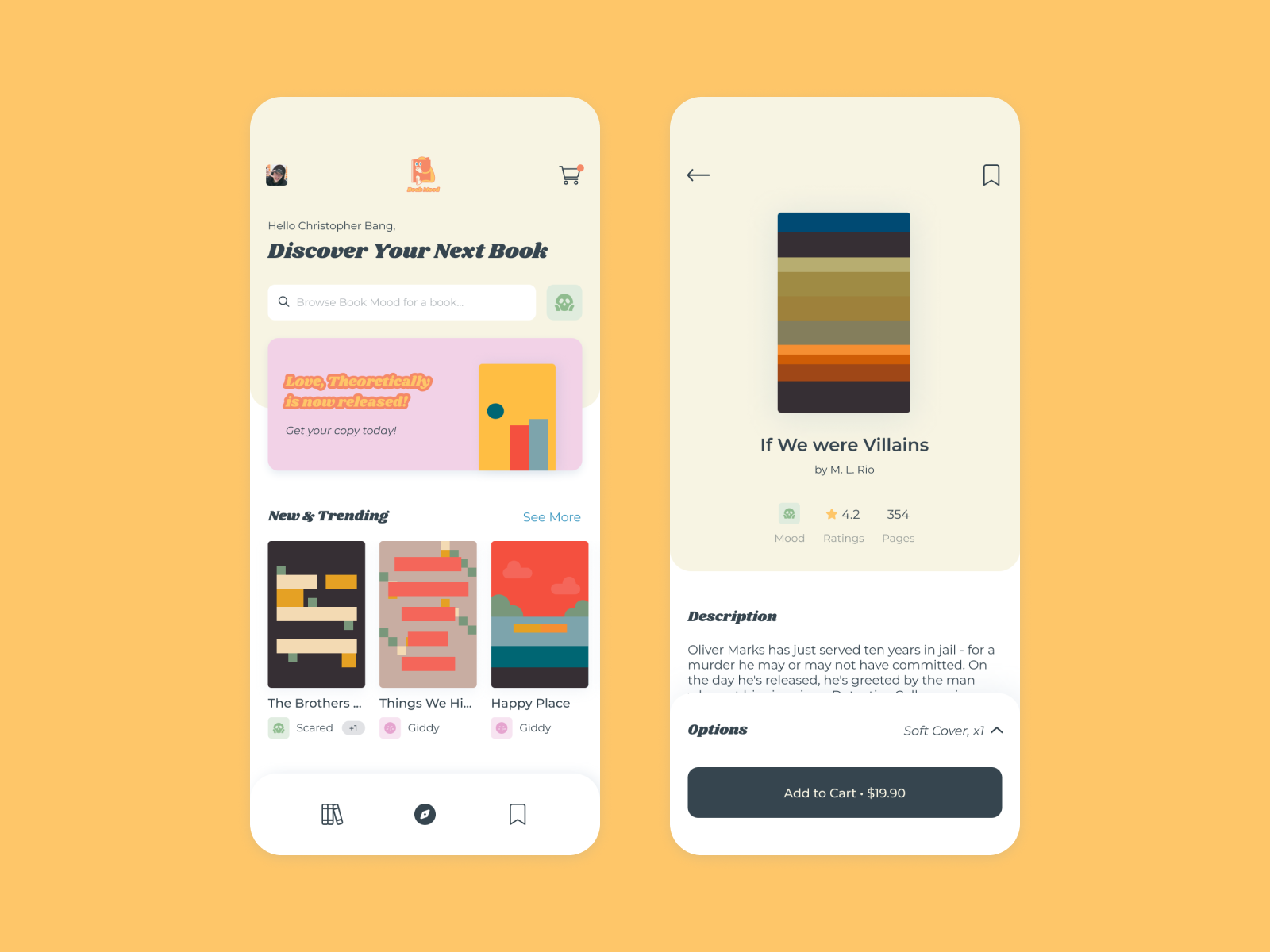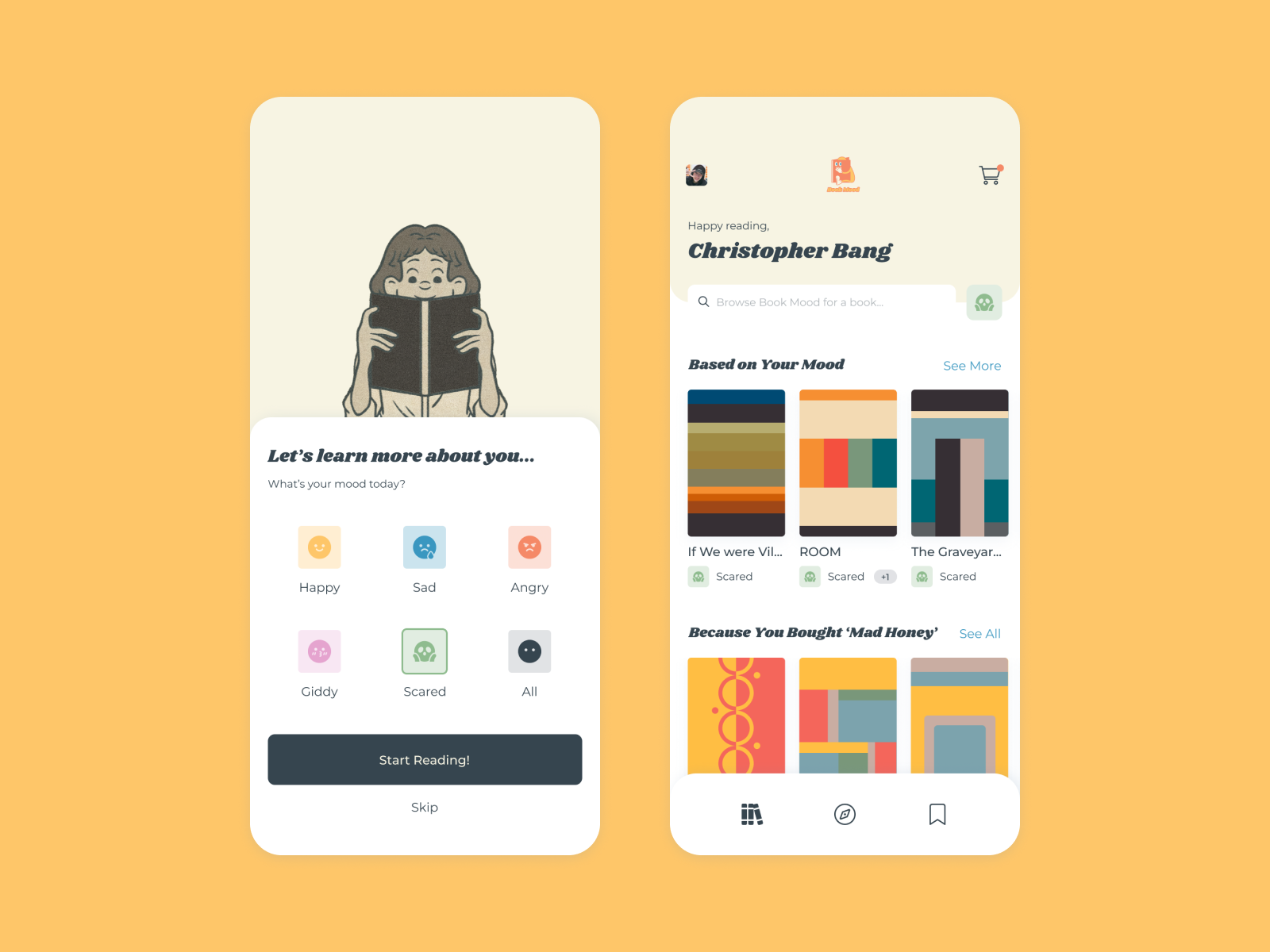 Below are some of the mockup screens for Book Mood. If you would like to view the full prototype itself, click here.