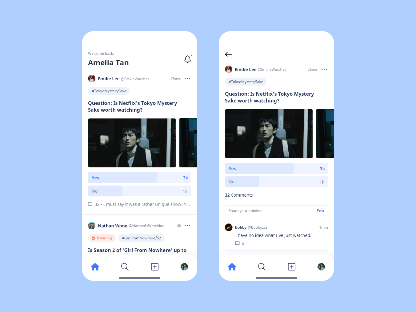 I got inspired to come up with this app when I was watching a crime-solving tv show. With every episode there were new twists and turns, and I wanted to interact with other viewers on who they think is the culprit.
