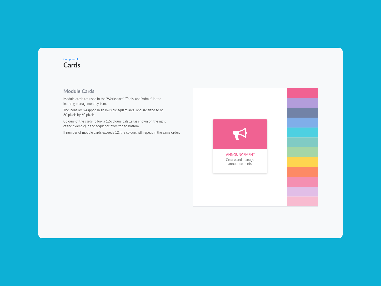 This is a style guide I produced for an e-learning management system used by the company I worked for at the time.