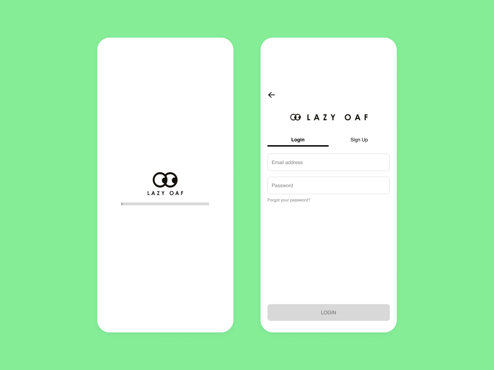 Below are some of the mockup screens for Lazy Oaf. If you would like to view the full prototype itself, view it here.